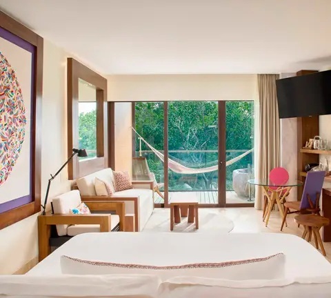 Connect with nature from your room admiring the intense green of the jungle and enjoy all the amenities in a room that will welcome you from the first second.