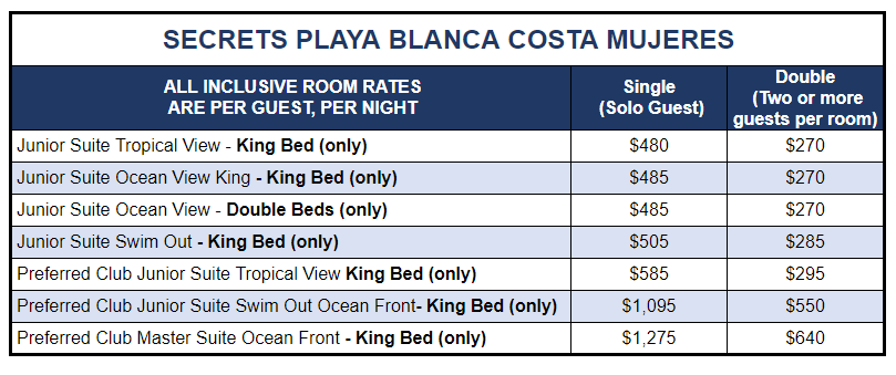 In order to book a room, the final balance (according to the discounted room block rates below) will be due up front, and a request will be sent to the resort. If the request is approved, the room is confirmed. If the request is denied, all monies are refunded immediately.