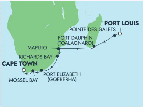Madagascar, Mozambique, Port Elizabeth (Gqeberha), Mossel Bay, South Africa