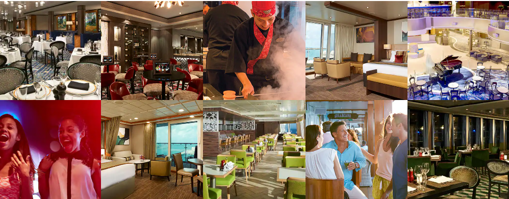 Alternative dining with cover charges include Italian, French, Japanese (Sushi, Sashimi and Teppanyaki), Mexican and Brazilian Steakhouse cuisines. Also there’s Pizza 24/7, delivered anywhere on board, and also to your cabin for a small charge.