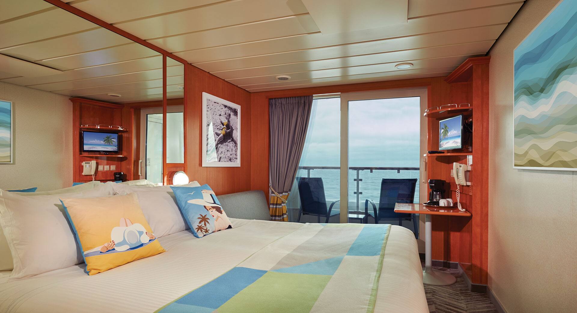 These Oceanview Staterooms have room for up to four guests, with two lower beds that convert into a queen-size bed and additional bedding to accommodate up to two more guests. You'll also have a porthole to enjoy an awesome view, and some can connect for added convenience.