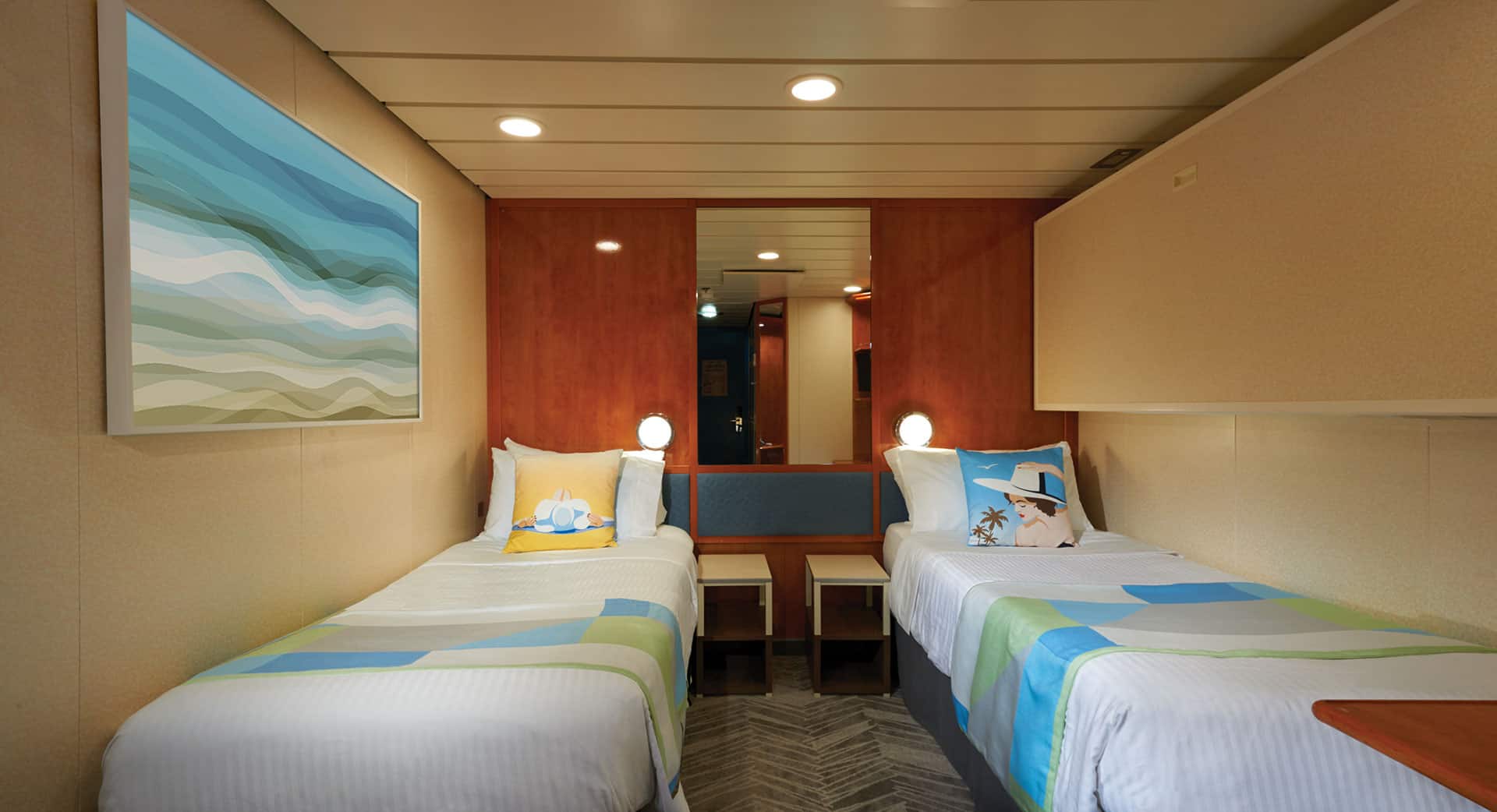 These Inside Staterooms are the most affordable way for you to cruise. With room for up to four, you'll have two lower beds that convert into a queen-size bed and some with additional bedding to accommodate up to two more guests.