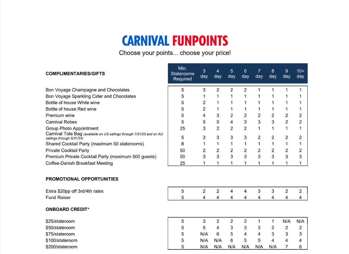 (4 Points Are Already Included W/ 5 Or More Rooms Booked. 0 Amenity Points Will Be Issued If Less Than 5 Rooms Are Booked For The Group). Group Leader Will Officially Choose Amenities.
