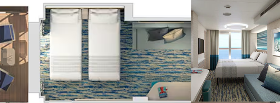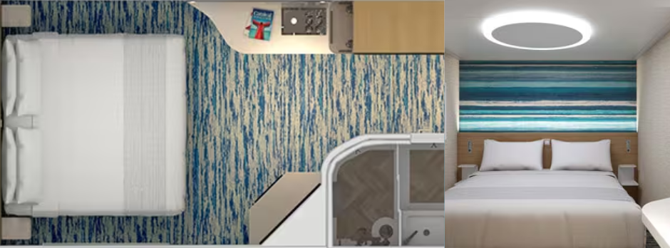 Two twin beds (convert to king). Vanity with illuminated mirror. Full bathroom with shower. Ample closet space.