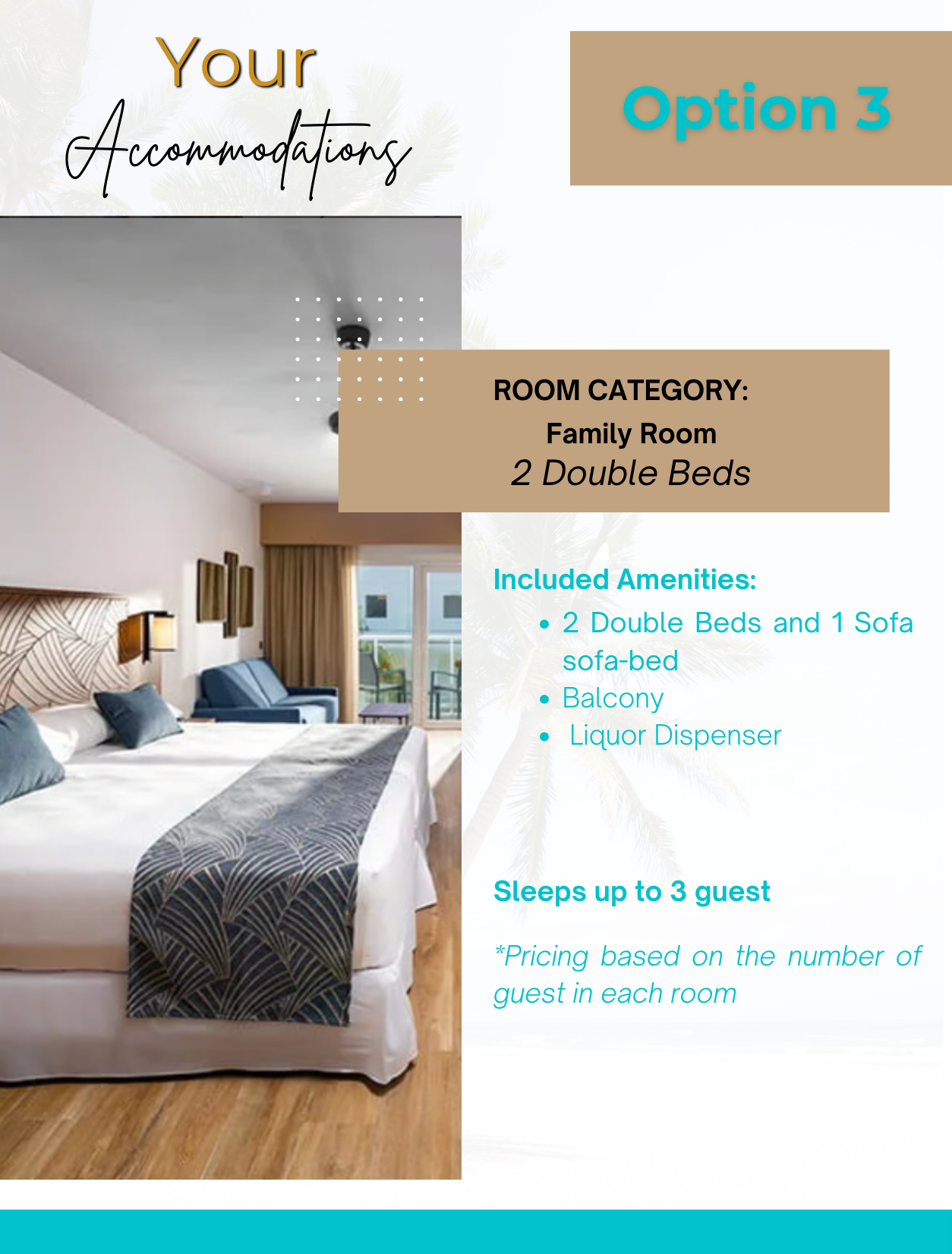 Bedding- 2 double beds and 1 sofa-bed. Category Room Requests are not guaranteed. They are based on availability upon check-in.