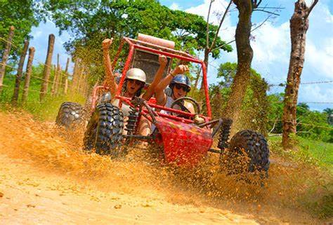 ¡Amantes de la adrenalina! Exploren el campo dominicano en un emocionante vehículo todoterreno Polaris o Honda mientras recorren Punta Cana. Su primera parada en este paseo en buggie por Punta Cana es Atabey Park, donde nadarán en un río subterráneo dentro de una cueva artificial y explorarán sus demás atracciones antes de dirigirse a Playa Macao. Relájense bajo las hermosas palmeras y naden en las cristalinas aguas azul turquesa, justo antes de visitar Tours Point Ranch. Terminen el día aprendiendo sobre las exportaciones más famosas de la República Dominicana, como el café y el cacao, antes de probar algunas de ellas. Si visitan durante el año escolar, tendrán la oportunidad de conocer una escuela local.