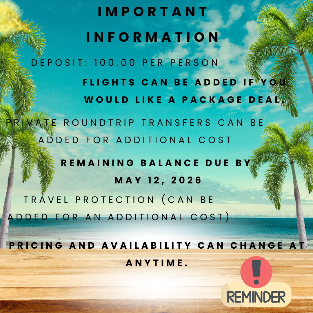 A one-time price adjustment is permitted per room and only applies to the land portion. The air portion of a booking is not eligible for price adjustment. All travelers in the room must have purchased insurance to qualify. Price adjustments must be requested prior to final payment due date and, if applicable, any refunds will be processed to the original form of payment unless otherwise requested for added tours, transfers or fees. This does not apply to non-refundable room categories. Pricing must be available at Vacation Express at time of the request and all components must match. Email request for price drop adjustment to pricedrop@vacationexpress.com and include current screen shot including same hotel, room category and flight schedule. No changes can be made to bookings with non-refundable hotel rates.