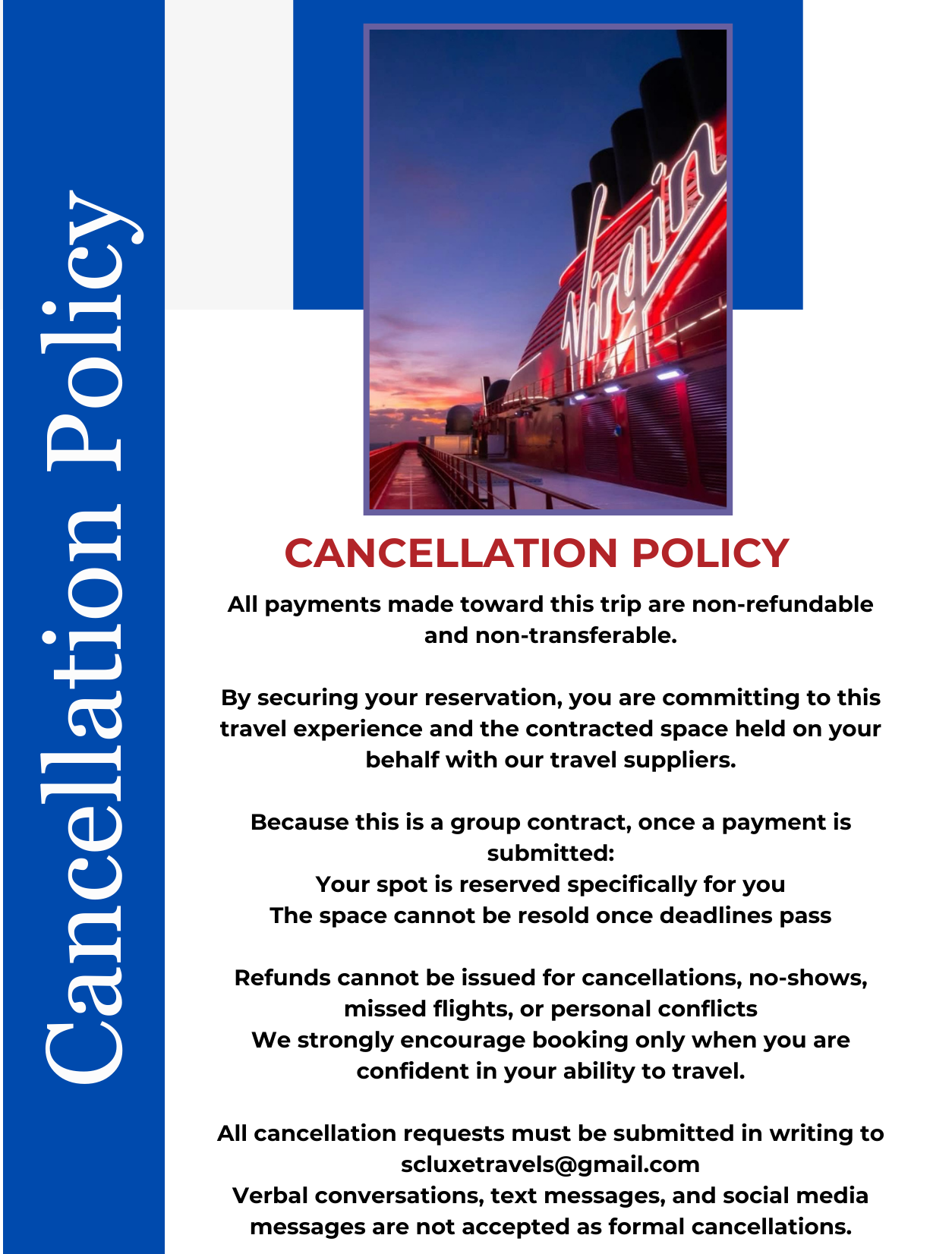 SC Luxe Travels reserves the right to maintain a safe, welcoming, and enjoyable environment for everyone.