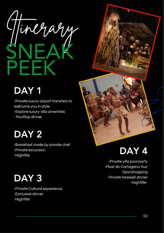 Private Chef services & prepared meals where mentioned (TBD)