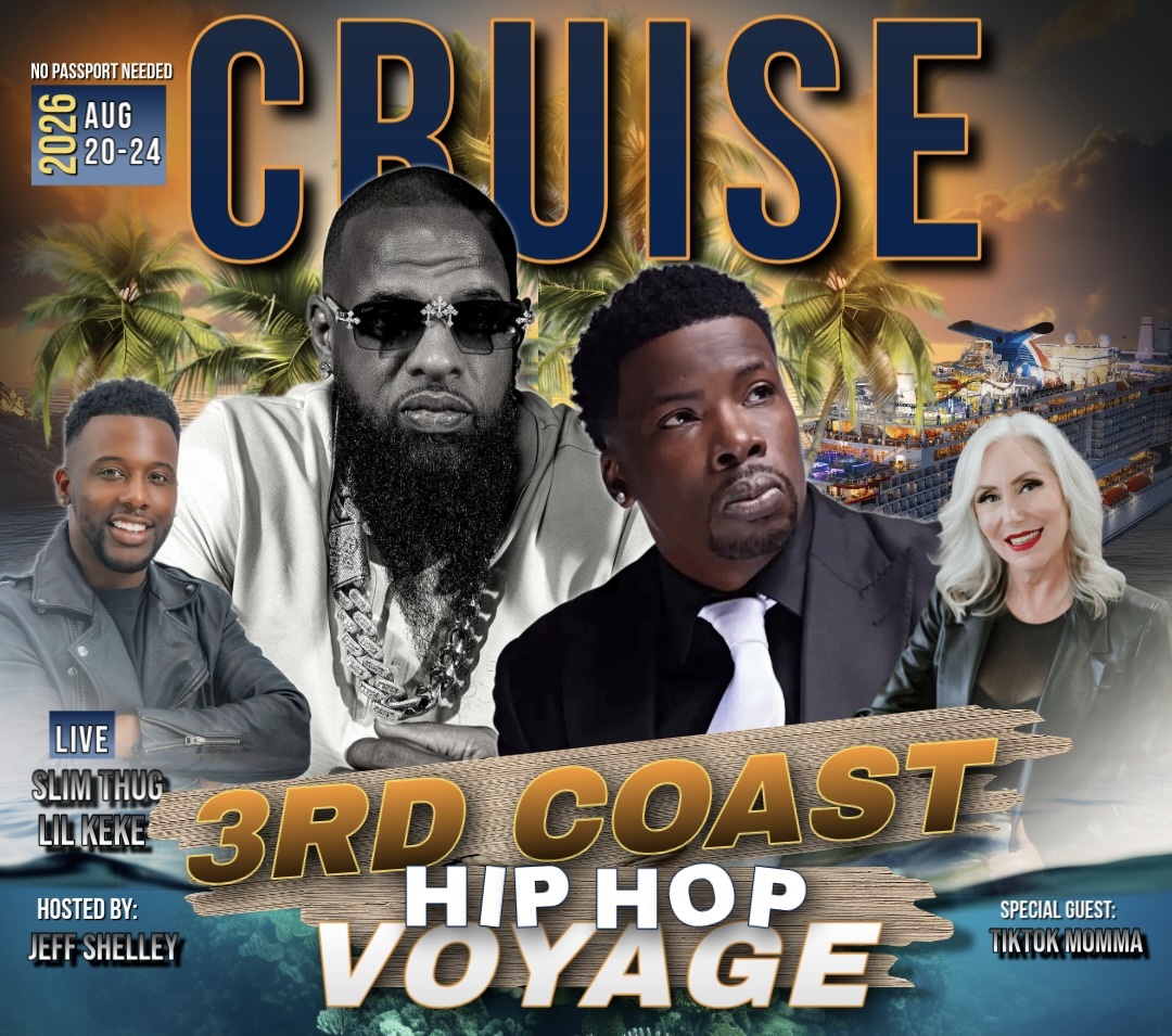 The annual 3rd Coast Hip-Hop Voyage is hittin’ the seas August 20–24, 2026, sailing out of Galveston, Texas and cruising to Cozumel, Mexico on the Carnival Breeze. This 4-night experience is a celebration of Houston and the 3rd Coast hip-hop culture, with live performances, DJs, comedy shows, and themed events that keep the party going all day and night. This isn’t just a cruise, it’s a cultural movement on the water.