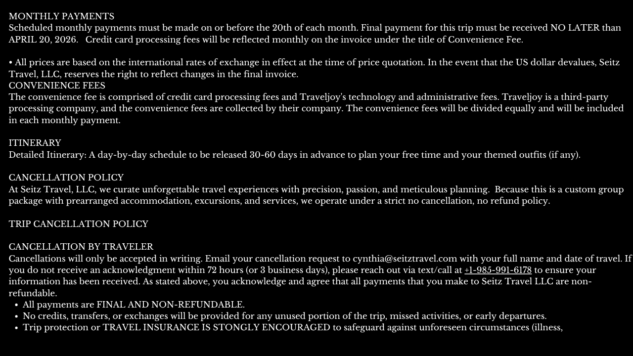 All excursions (except where they are Optional)