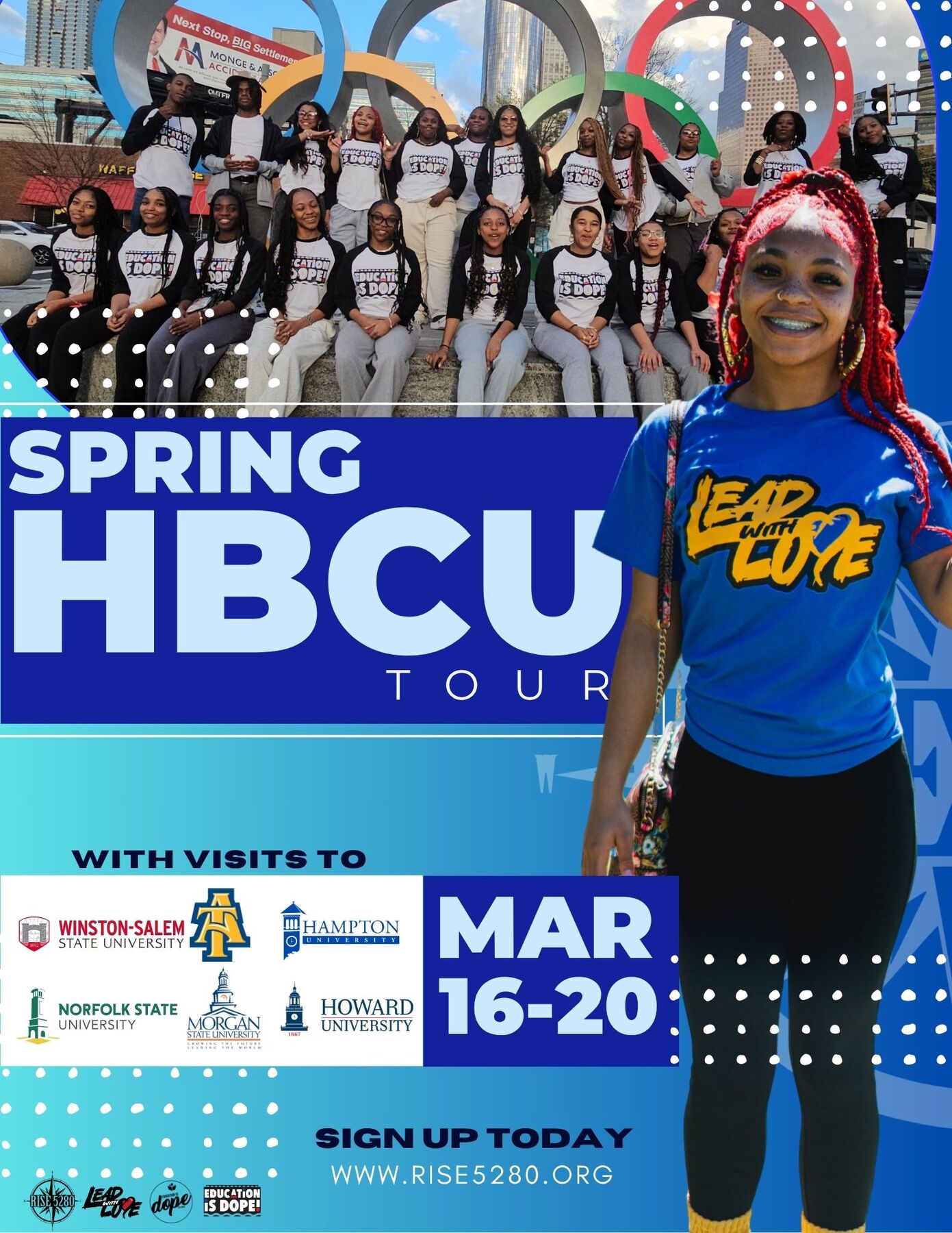 RISE 5280's Spring 2026 HBCU Tour is an experience you do not want to miss!! We will visit 6 HBCU's, spend the day at The National Museum of African American History and Culture as well as visit Sycamore and Oak!!! Spots will go fast so sregister now!!!