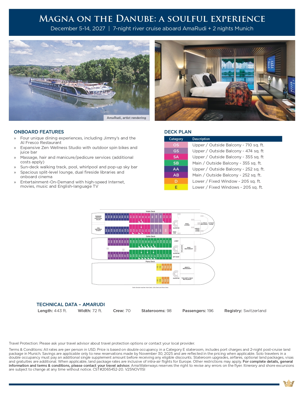 IMPORTANT:Starting in 2023, all guests traveling with AmaWaterways remain responsible for ensuring they meet the travel entry requirements for each country they plan to visit before, during or after their river cruise. These requirements, as mandated by airlines and individual countries or regions, may change without notice and cancellation fees will apply should guests no longer meet the country entry requirements for their cruise or land program.