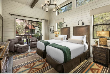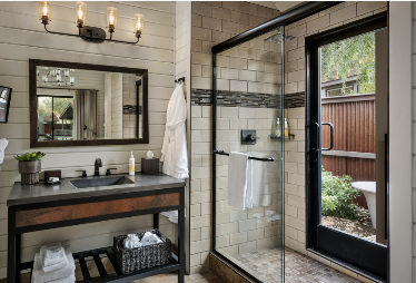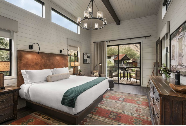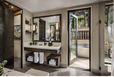 Embrace pure serenity and relaxation while residing in a Spring Bungalow. An inviting outdoor covered patio with comfortable lounge furniture and a fireplace provide comfort year-round. Clear your mind as your listen to the babble of a creek meander down the gentle hill slope.