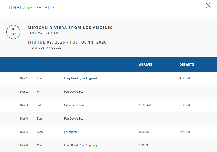 Click to see more itinerary and ship details