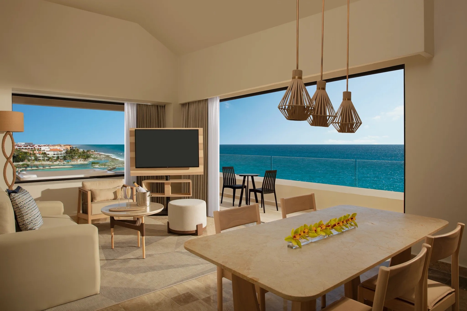 Relish the tropical tranquility in this 721-square-foot suite that features superb views of the Cancun shoreline. This suite offers a separate living space and guest bathroom, in addition to a king bed, full bath, desk, and sofa. The private, furnished patio has an outdoor hot tub for two.