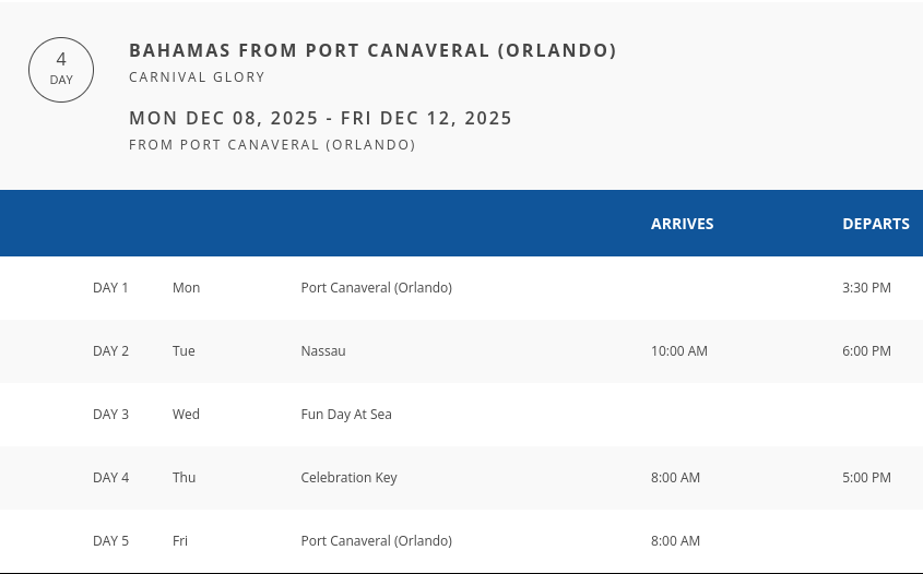 ➡️ starting from $125 per person due (price includes prepaid GRATUITIES & VACATION PROTECTION)