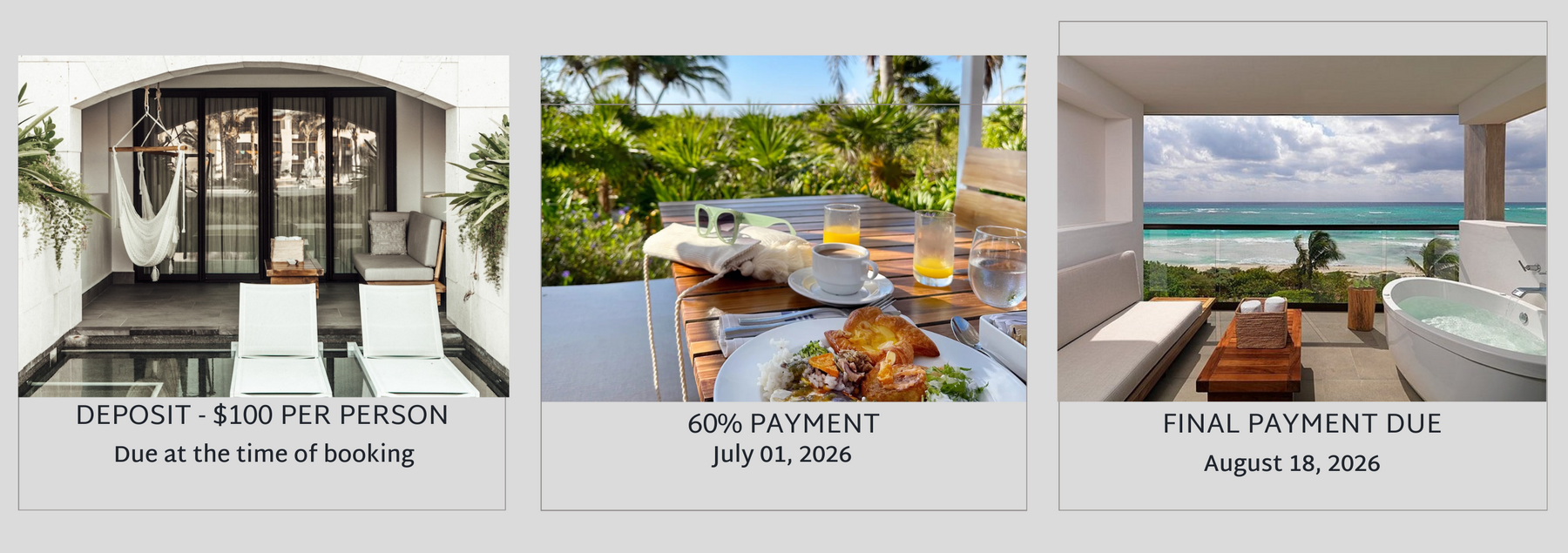 Our spacious Alcoba offers either a tropical or pool view, an outdoor lounge and spa tub for gathering at golden hour.