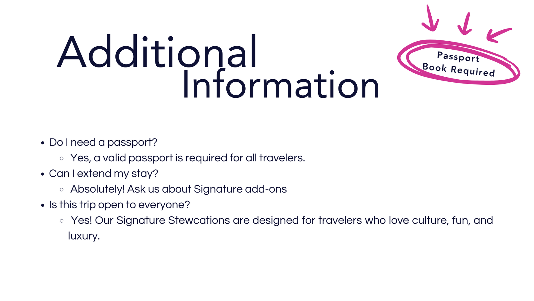 All deposits are NON-REFUNDABLE. Opting in to Travel Insurance is HIGHLY recommended as in the event of cancellation, travelers are encouraged to file a claim. In the event that no insurance is selected, each traveler will be required to sign a waiver, acknowledging their decline. Please note that without insurance, in the event of cancellation, you may lose all funds.