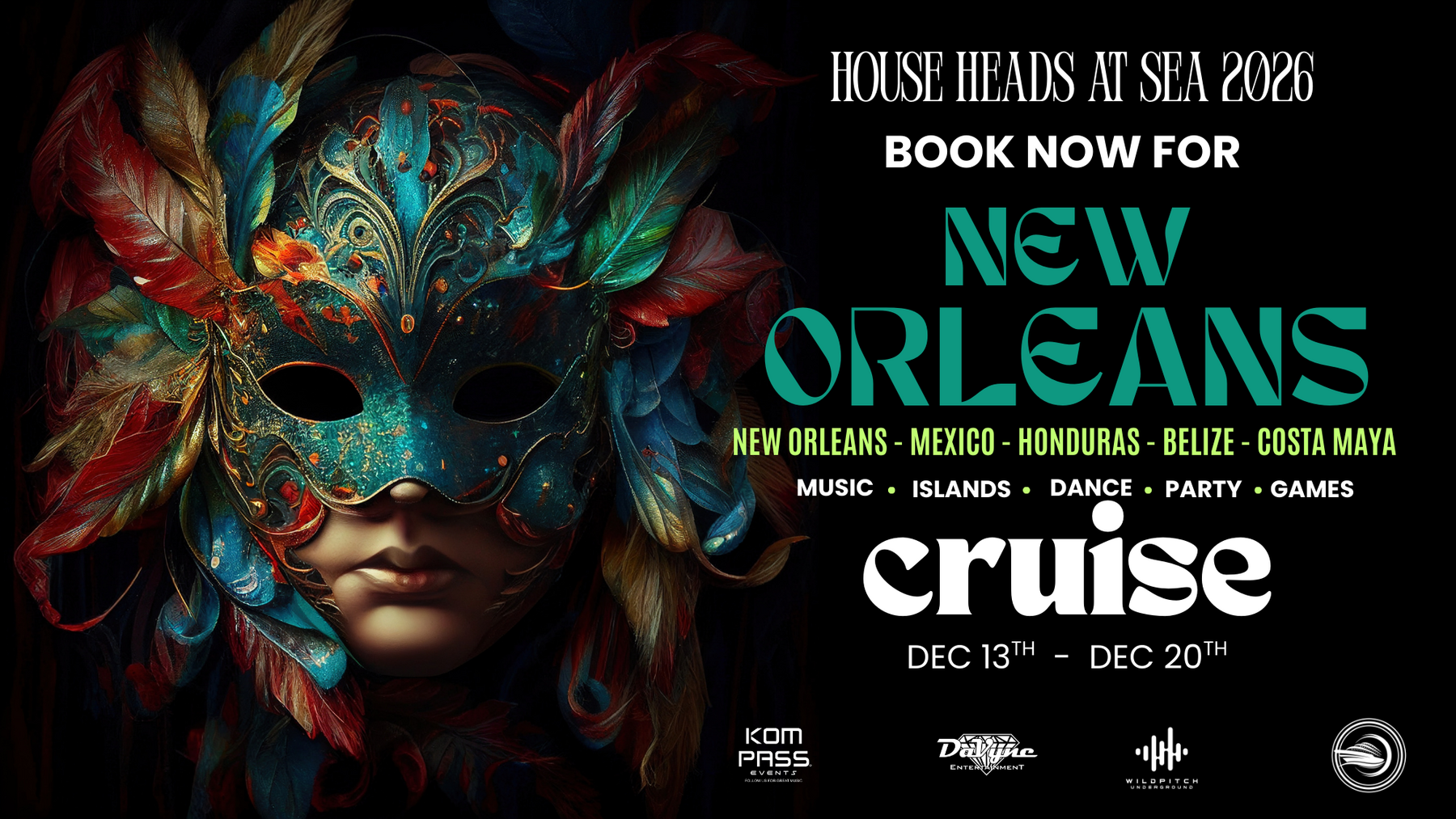 Prepare for seven days and seven islands with non-stop music, dancing, Games, and connections as we set sail from New Orleans, Louisiana.