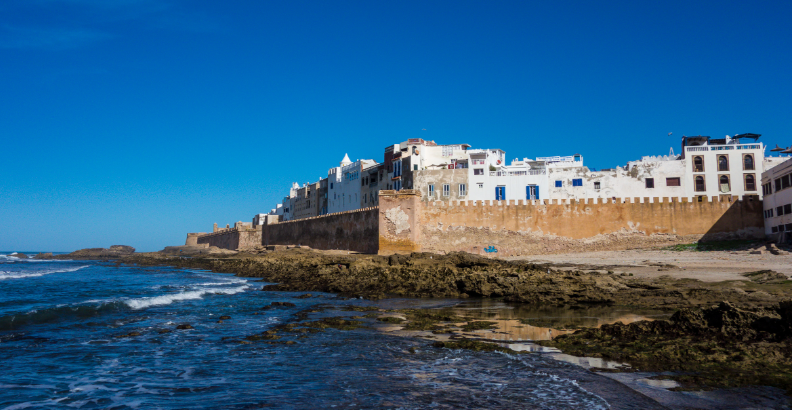Leaving the gite, we walk back to our bus for a short drive to the palace of Telouet. This once-grand building stands abandoned and crumbling and we have deemed it unsafe to enter however we can walk around the outside and take photographs. We continue our scenic drive over the High Atlas Mountains to Marrakech, via the Tizi n’Tichka pass, which at 7,415ft (2,260m) above sea level is the highest road in Morocco. The scenery is spectacular and there are some wonderful views of the mountains. We stop at a women’s cooperative argan oil farm, where you can see the trees, get a demonstration of the production process, and purchase products if you’d like. Our journey finally brings us to the flat arid plains of Marrakech, and then onwards to the pretty seaside town of Essaouira.