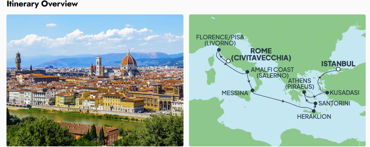 10-Day Mediterranean from Rome to Istanbul: Santorini, Athens & Florence