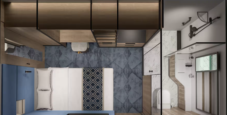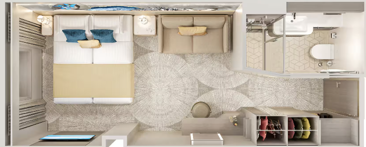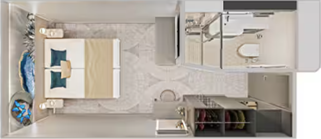 An affordable family option, these staterooms offer many of the same amenities as an Oceanview and include two lower beds that convert to a queen and two Bunk beds.
