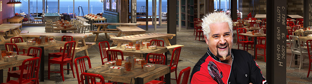 We call Carnival Jubilee's onboard burger spot Guy’s Burger Joint™. We teamed up with Guy Fieri to design not just the burgers and fries, but to help bring in the kind of rustic atmosphere you’d find at a roadside burger shack somewhere off a coastal highway. All signs point to ambiance — and serious flavor — so you can try a burger dressed up the way Guy likes it, or take it off-roading… to the nearby topping bar, where you can make it your own.