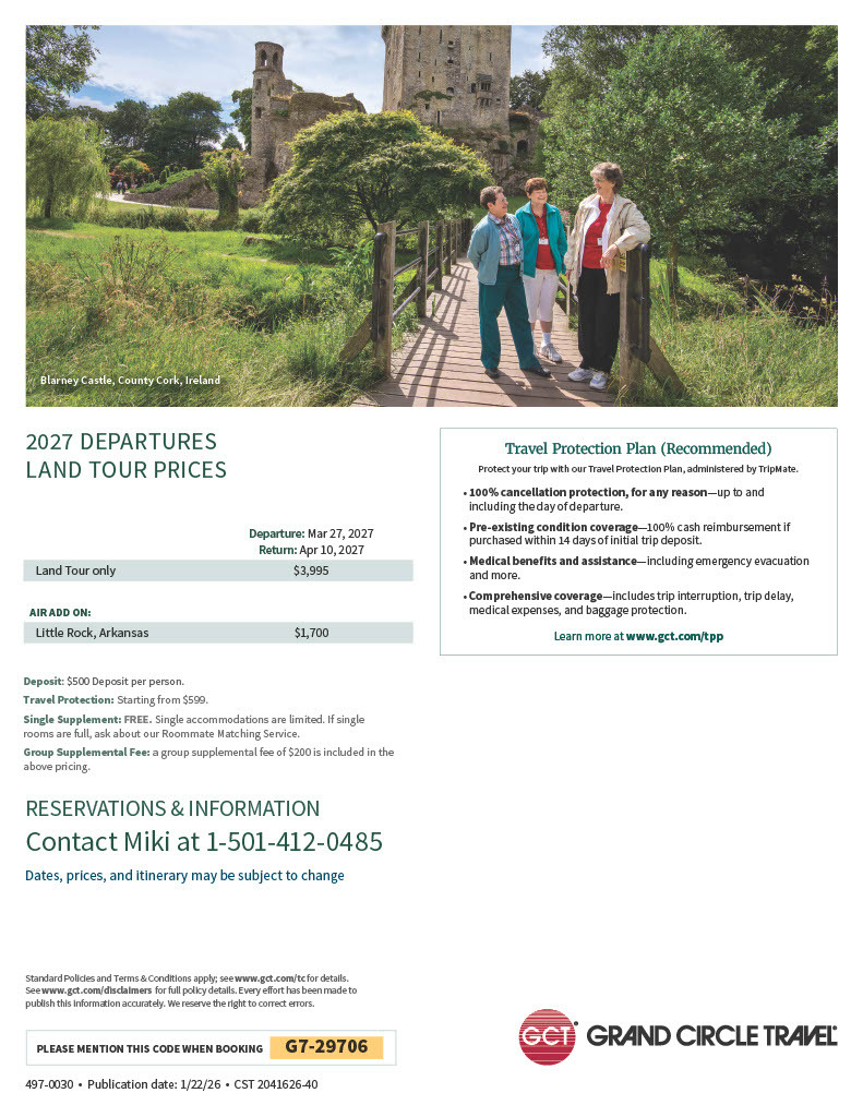 You have options when it comes to travel insurance. You can purchase through the tour operator, Grand Circle, or if you prefer, you can buy travel insurance on your own, through Allianz.Here you can select from several policies that work best for you. We are not insurance agents and cannot advise you on policies; we can only recommend vendors. Allianz is our preferred insurance provider, and we love working with them. Click here (Allianz) to purchase a policy today.