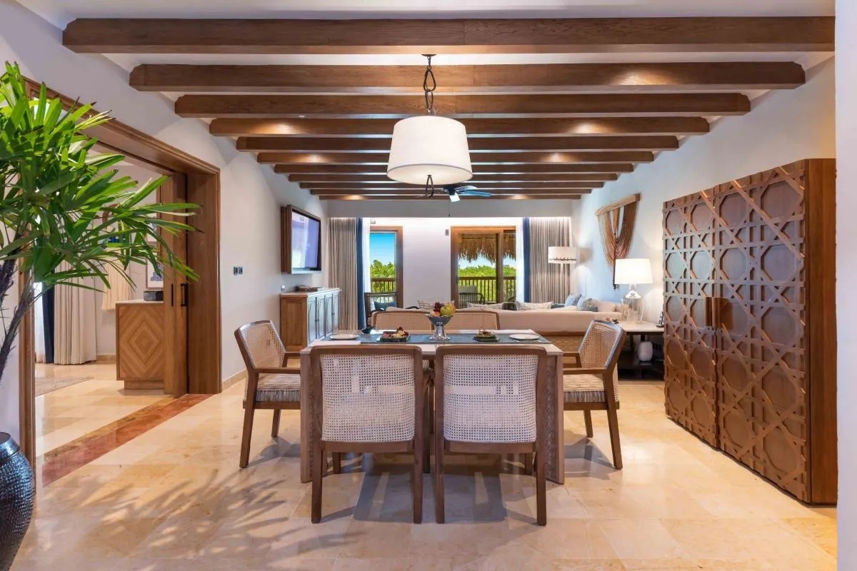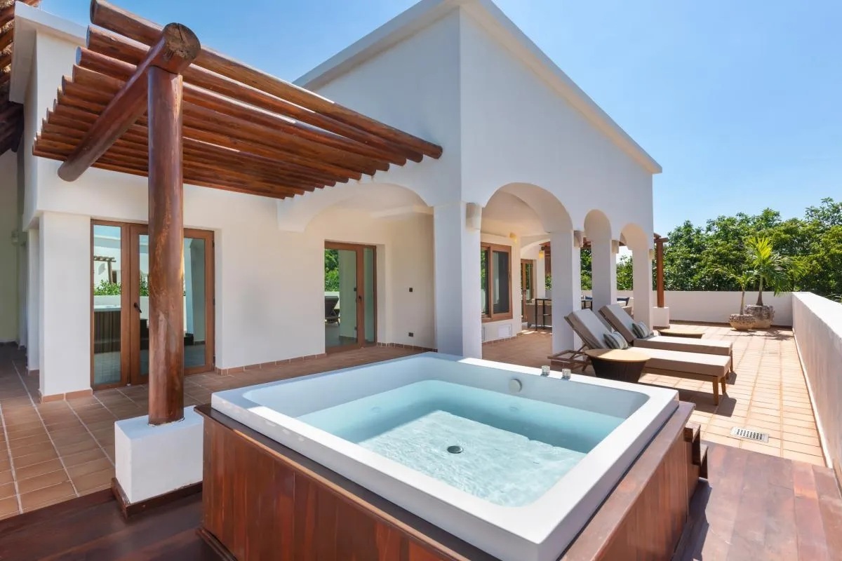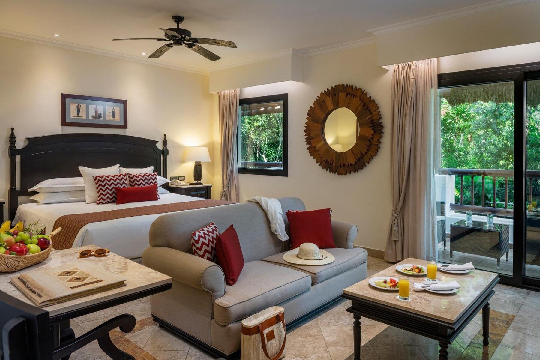 Our spacious colonial style Deluxe Junior Suite of 516 sq ft offers an elegant style with marble wood finishes, hydro tub and a balcony or terrace. The perfect suite if you travel with family or friends.