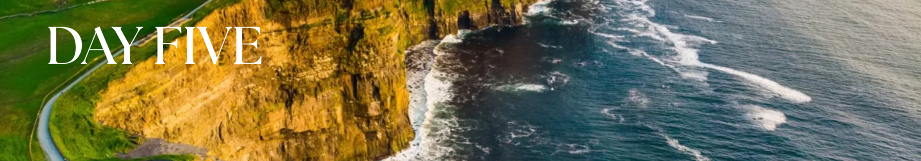 churning Atlantic and extending for nine miles. Take in the spectacular views as you walk atop the cliffs. Travel on through the austere beauty of the Burren, a