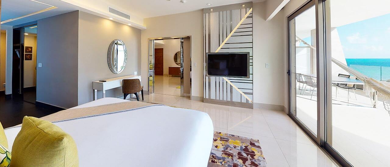 The 588 sq ft suite features a spacious bedroom, full bathroom, private terrace, and resort landscape or ocean views. The terrace offers a stunning vista of the resort’s landscape, a hammock for afternoon siestas, and a swim-up pool to take a refreshing dip when the sun gets too hot.