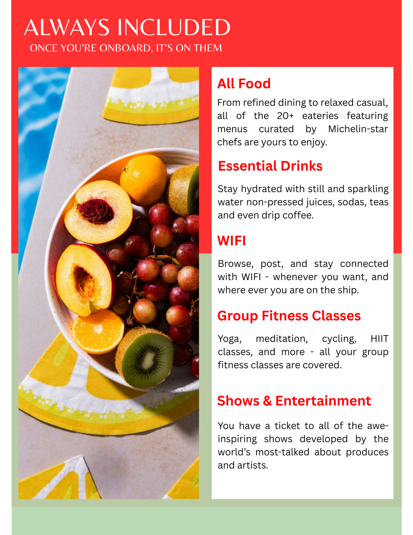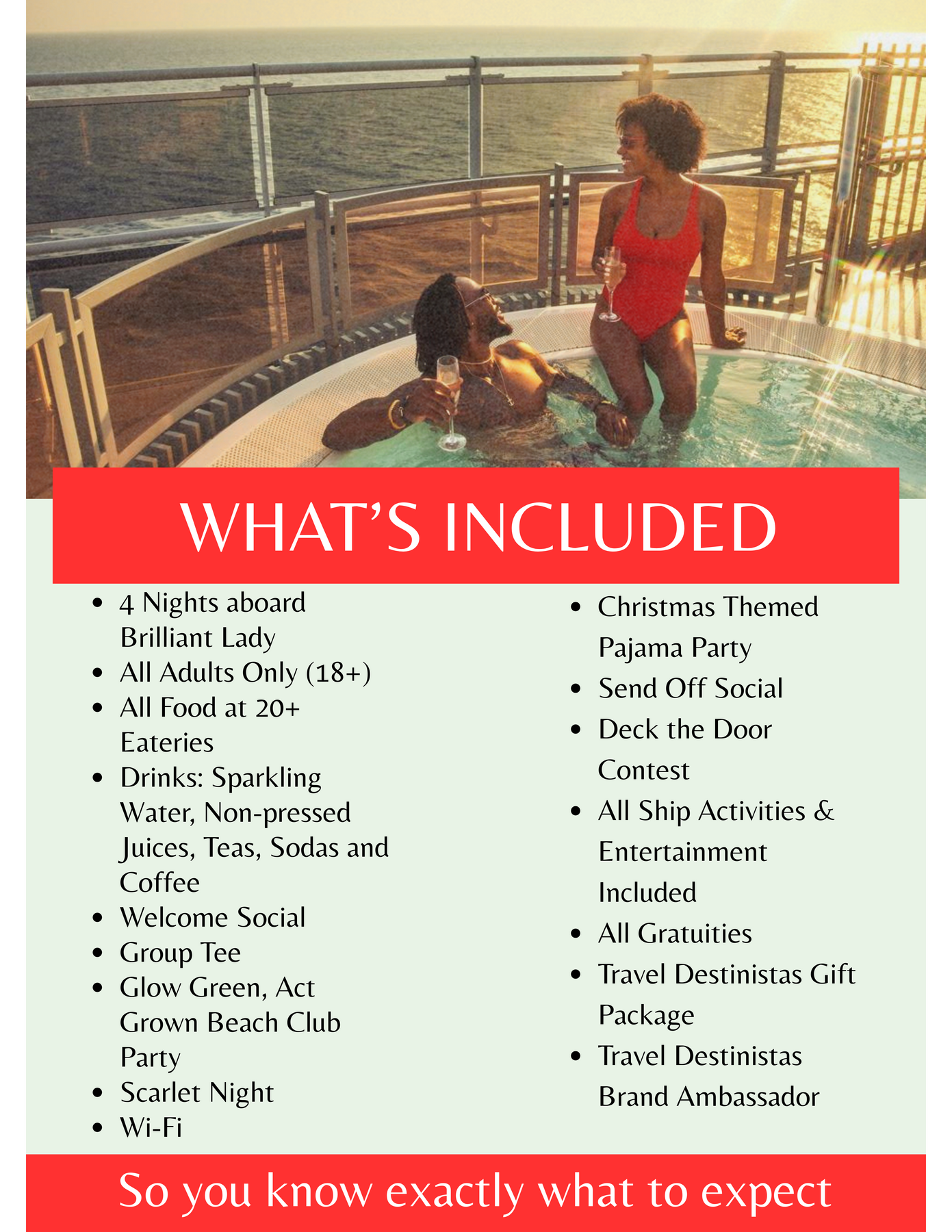 Pricing is based on a double occupancy stateroom (Choose this package if there will be 2 persons in a stateroom)
