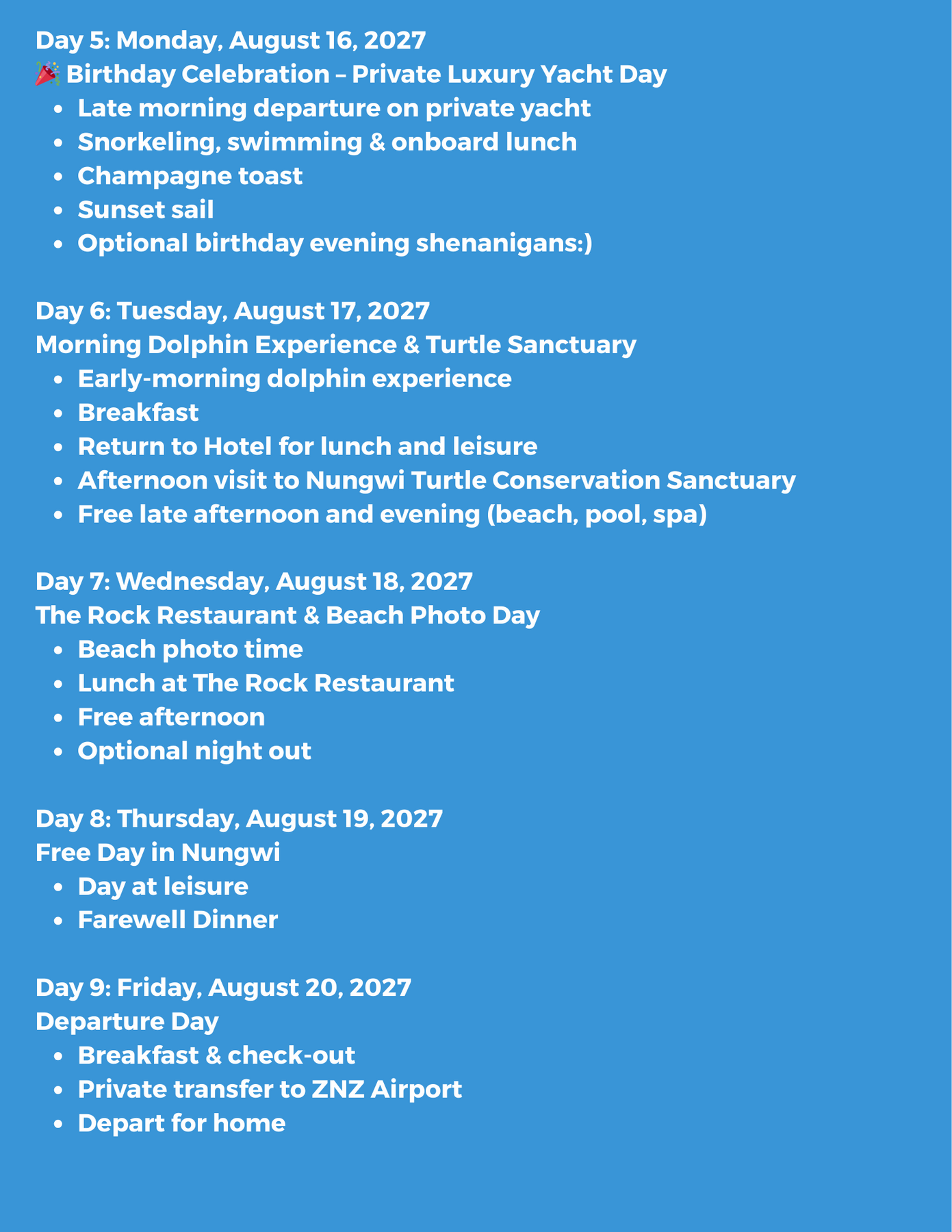 • Free day in Nungwi