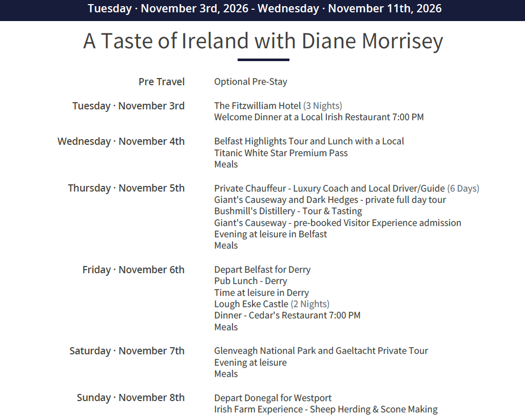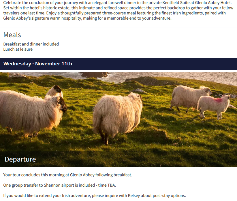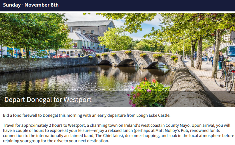 Unforgettable Travel Company (our partner in Ireland) will handle deposits for your upcoming trip to Ireland. Please note that the charge will be processed by Unforgettable Travel Company, NOT by Foreign to Domestic. The trip is priced in USD, we recommend notifying your bank or card company before making payments.