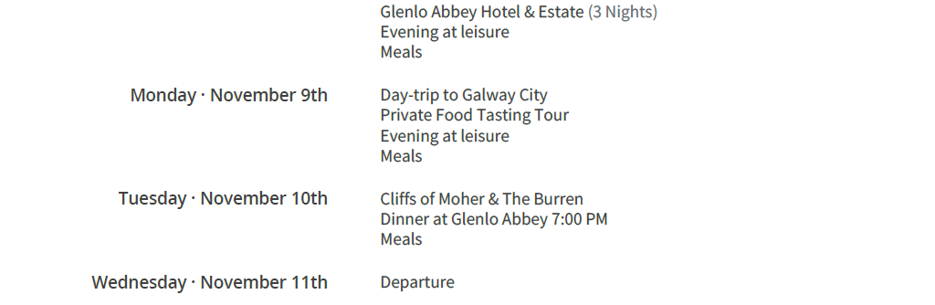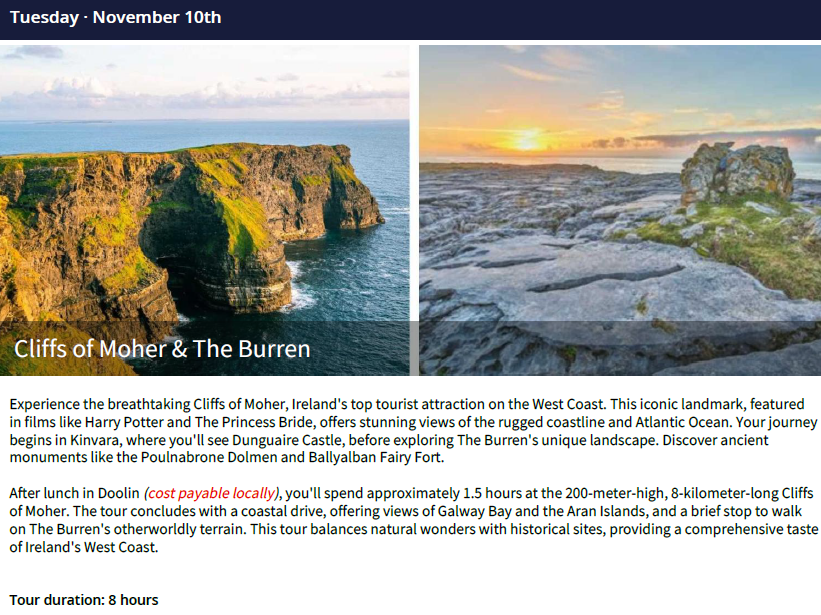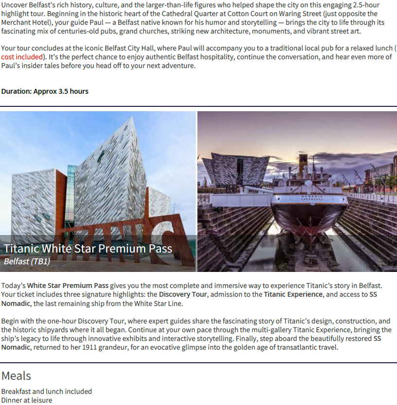 Tour Pacing & Mobility? No hiking or biking included on this tour. We will keep things at a nice, leisurely pace. We will be on walking tours that can be from 2 hour to 3.5 hours long & you must be able to walk well on cobblestone/uneven streets, flights of stairs, and moving your own luggage.