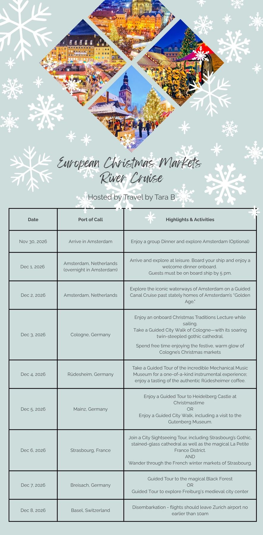In the unfortunate event that you must cancel travel, notice must be made to Travel by Tara B during standard business hours or via email to Tara@TravelbyTaraB which must include in writing, stating clearly and correctly each guest's name and ship sail date, with a brief statement of the reason for cancellation. Other forms of notice are not deemed sufficient. Cancellations received within 24 hours of vacation start date will be deemed as trip interruption, cannot be cancelled and are 100% non-refundable. The effective date of cancellation is the date that Avalon Waterways receives cancellation notice (typically within 1 business day of notifying Travel by Tara B). A change in sailing date, name changes, the substitution of a participant or a reduction in the number of guests in a stateroom are treated as a cancellation in that all applicable cancellation charges apply. A reduction in occupancy is subject to single supplement charge. All other cancellation charges are per person, based on the cancellation date, as follows: