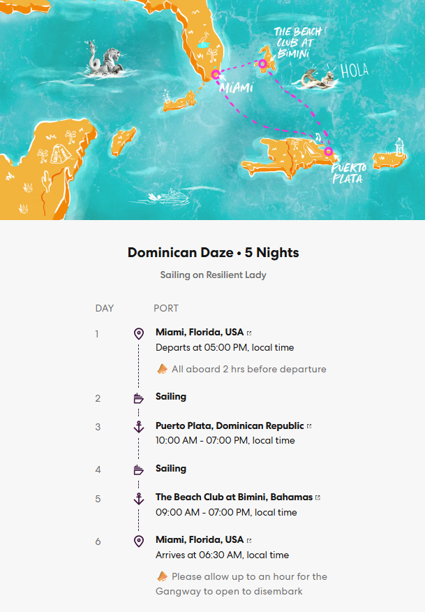 Set sail on an adults-only luxury voyage designed exclusively for couples. This 5-night sailing with Virgin Voyages includes stops in the Dominican Republic and The Beach Club at Bimini, plus your curated DTJ Signature Experience Package. Your package price includes: