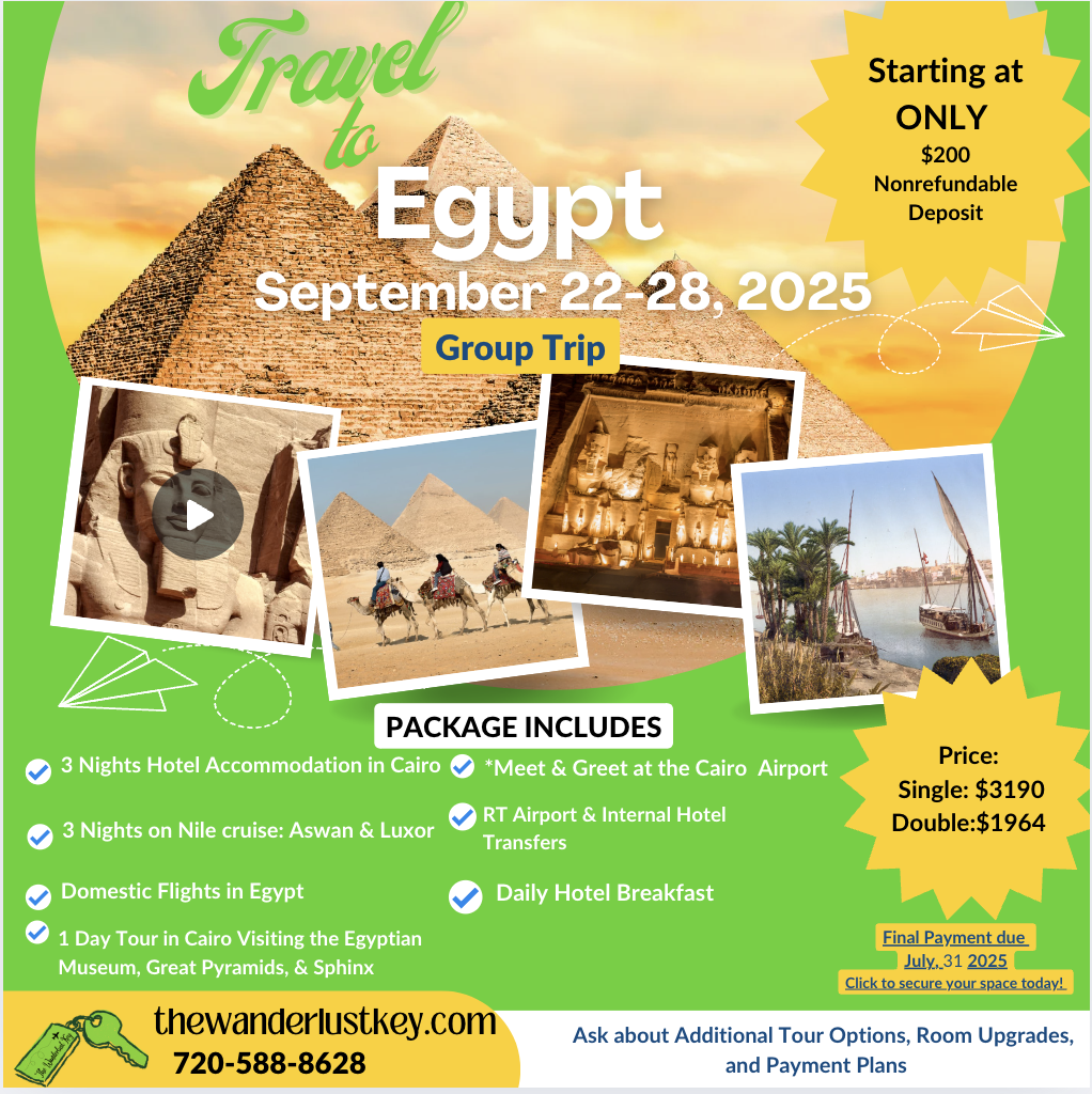 Embark on an unforgettable journey to the land of ancient wonders and timeless beauty: Egypt. Our group trip promises an immersive adventure through the cradle of civilization, where history whispers through every sandstone monument and the Nile River flows like a lifeline through the desert.