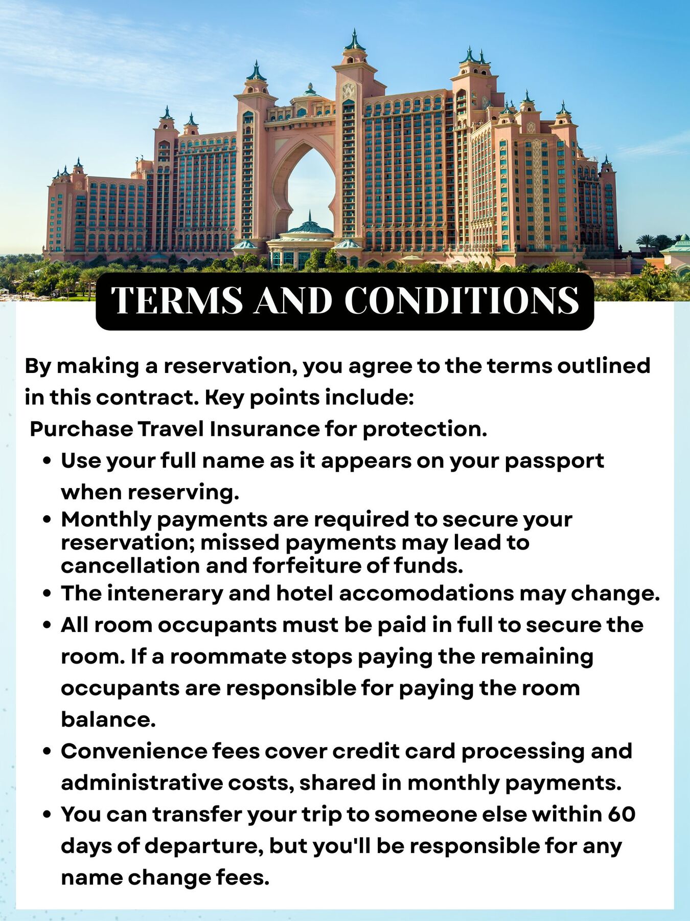 Double room occupancy rate requires two (2) people per room. All room occupants must be paid in full to finalize the booking and secure your vacation package. If one person does not pay, it's the responsibility of the remaining person to pay the balance on the room only.