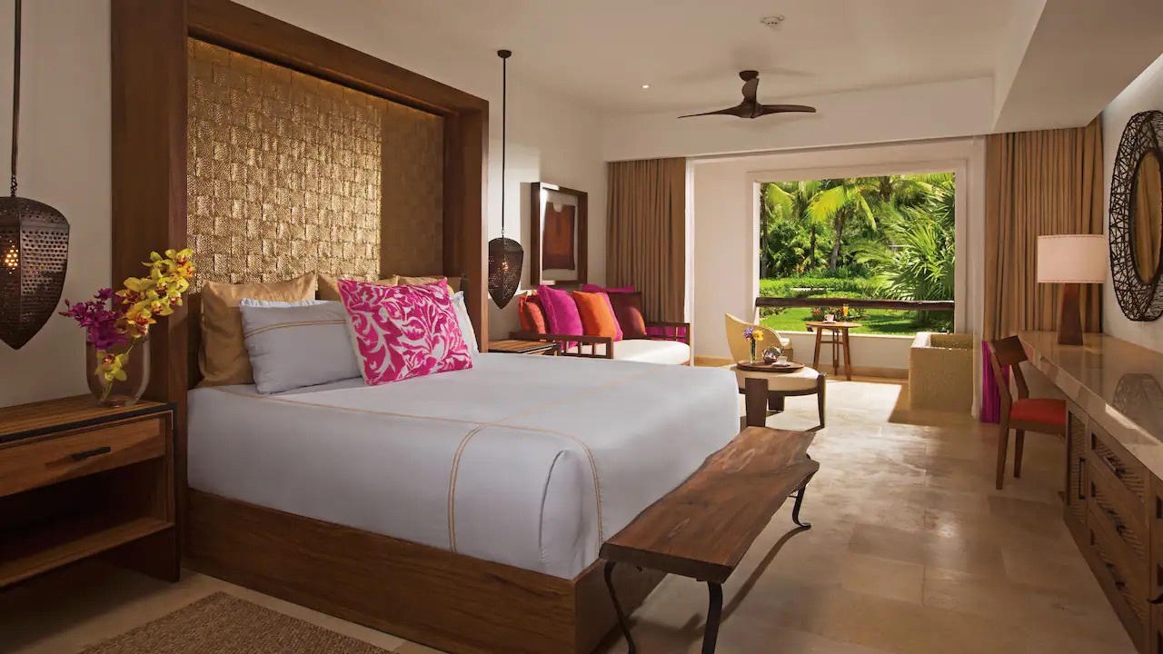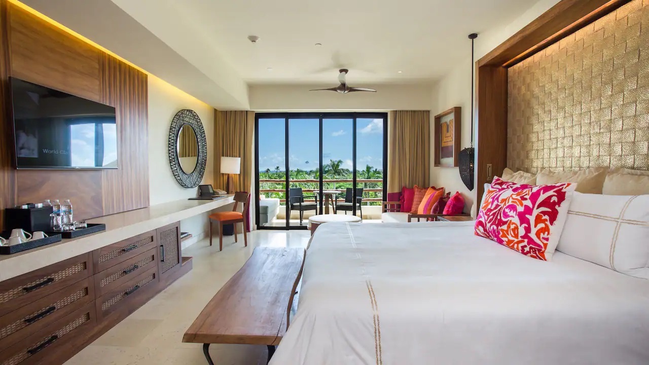 Relax in your 544-square-foot junior suite with a king bed. Look out onto the tropical landscape from your private terrace and enjoy amenities like a separate rain shower, double vanity, and hot tub for two.