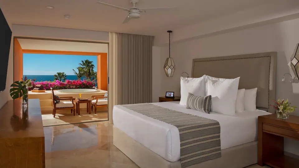 Settle into this 450-square-foot room, complete with a private terrace or balcony with fabulous Sea of Cortez vistas, an expansive bedroom, a bathroom with rain shower, and two queen beds—each boasting aromatherapy pillows and scented linens.