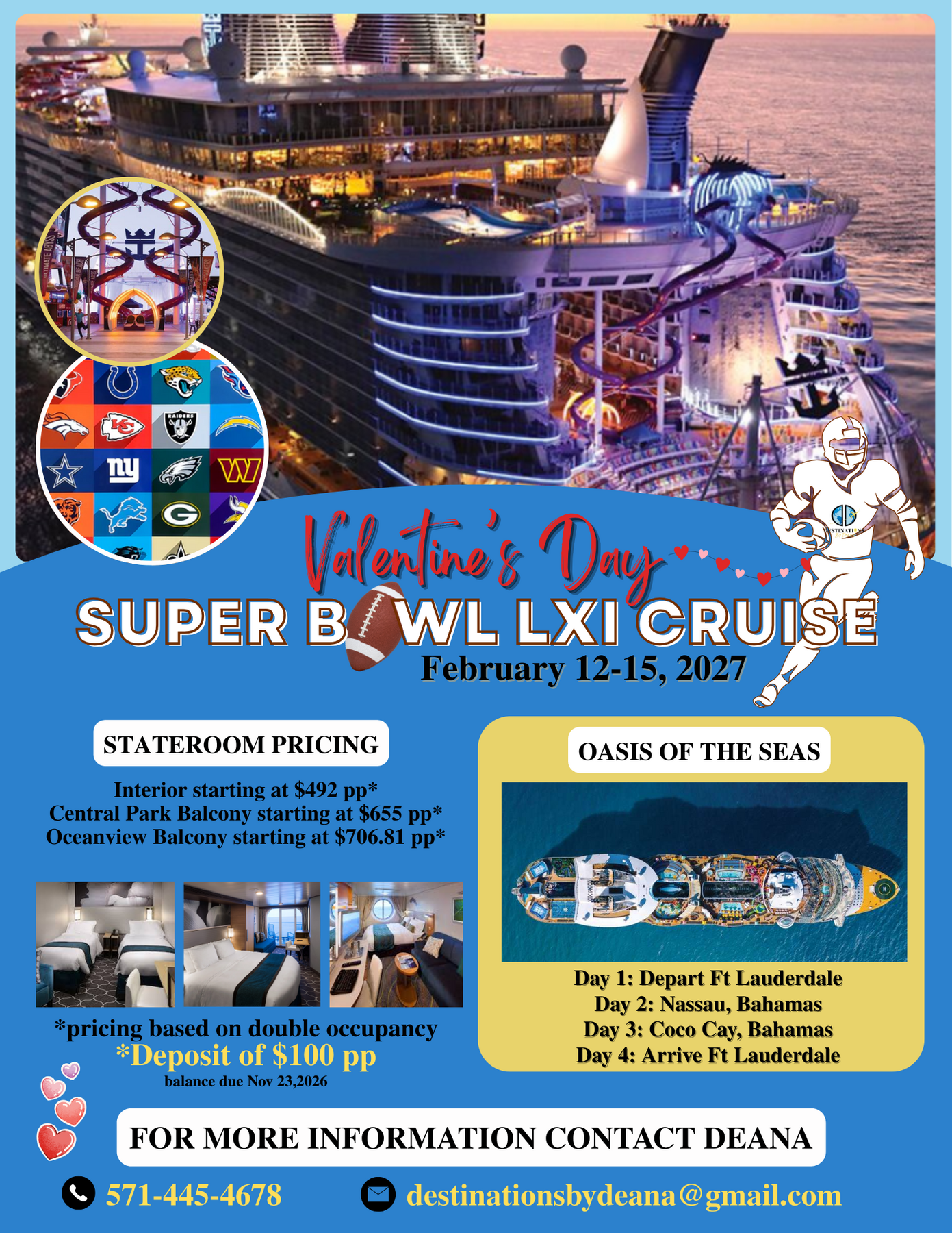 Join us for a once-in-a-lifetime group sailing as we celebrate Super Bowl LXI on Valentine's Day, February 14, 2027- LIVE at sea!