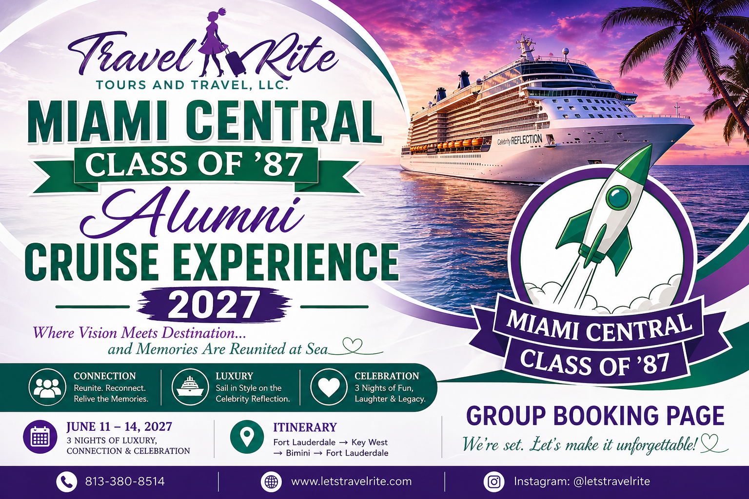 This isn’t just a cruise, this is your official reunion at sea, curated by Travel-Rite Tours & Travel Agency to bring classmates together for an unforgettable experience of connection, relaxation, and celebration.