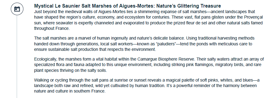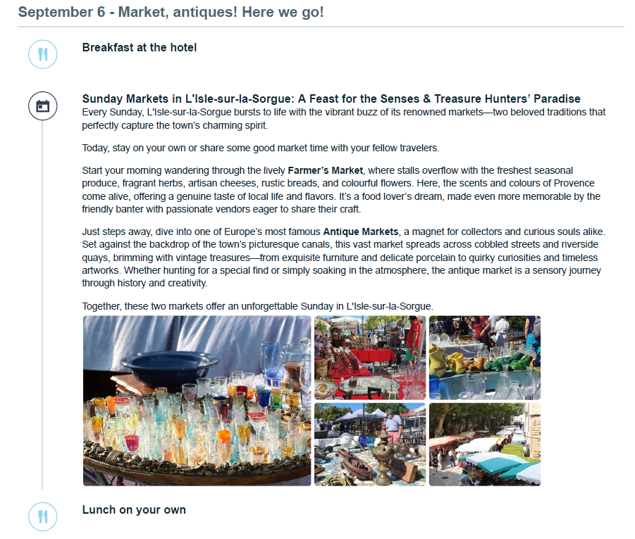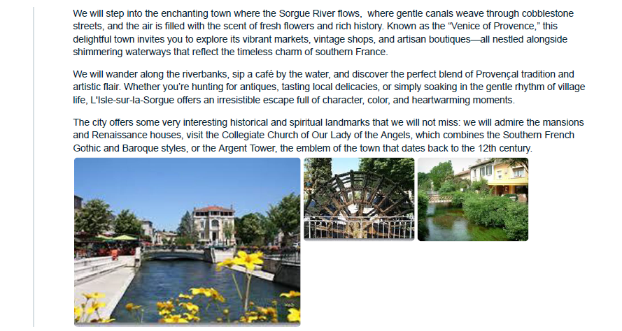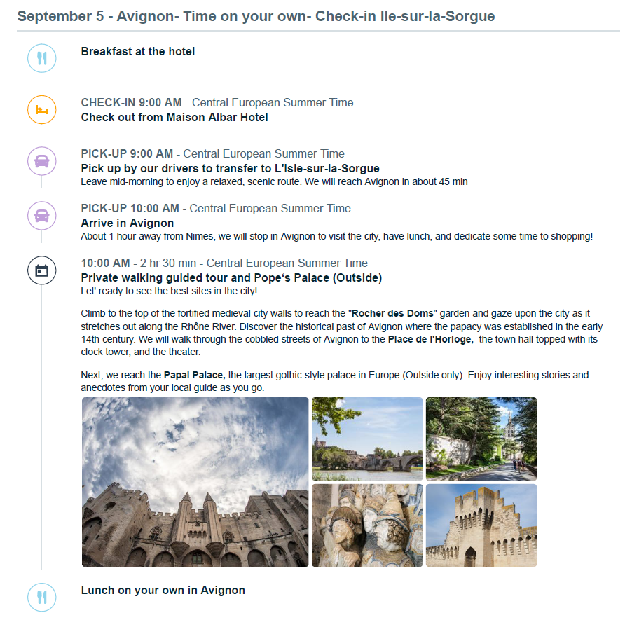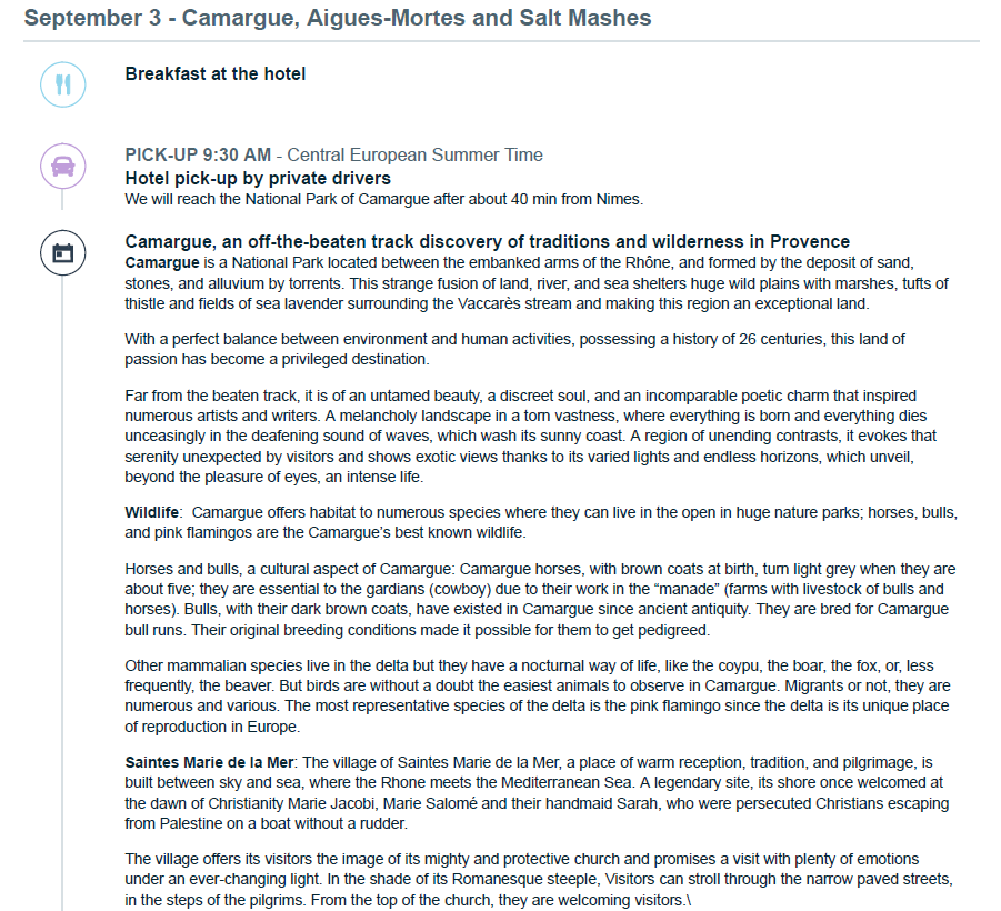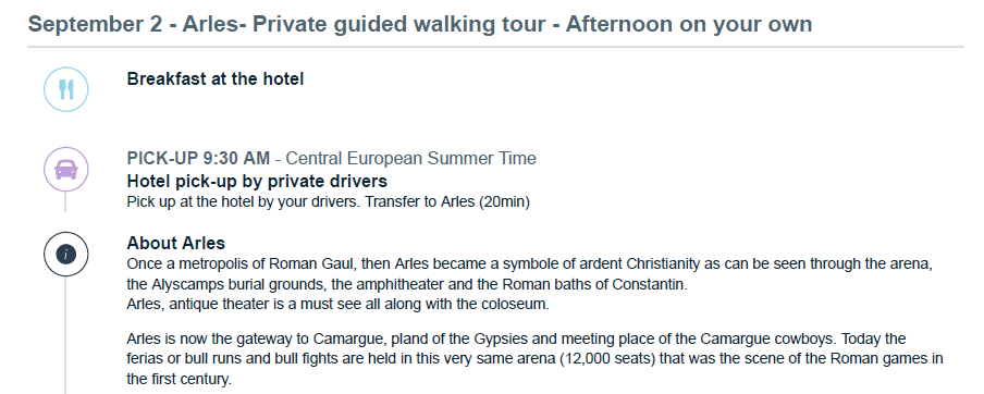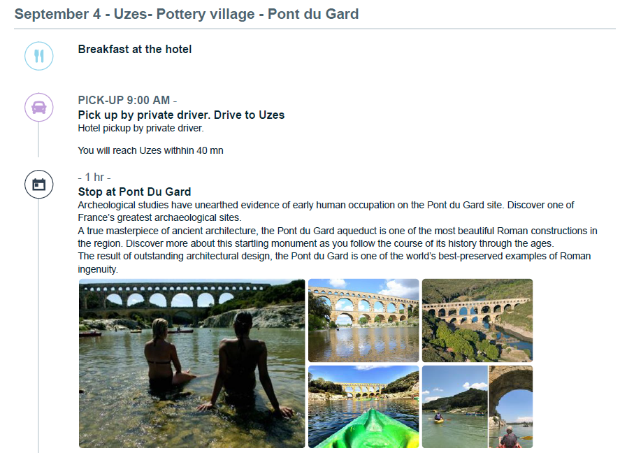 Flights - We have an Airteam that can work on your flights for a ticketing fee of $150 per person. Hotels - If you need a hotel booked for before the tour starts, we partner with excellent 4 & 5 Star Hotels throughout France. Or you can add an additional night at our tour hotels, feel free to ask us for a rate. Activities & Tours - We work with both private, local guides and also group tour companies. If you want to add more experiences to your trip plans we are ready to add more fun plans to your itinerary! Private Transfers - Wherever you are traveling from, we can organize a private driver to pick you up from the airport to bring you to the start of the tour- Nimes, France. Train Tickets - Let us help book your train tickets for you if you need them for your trip!