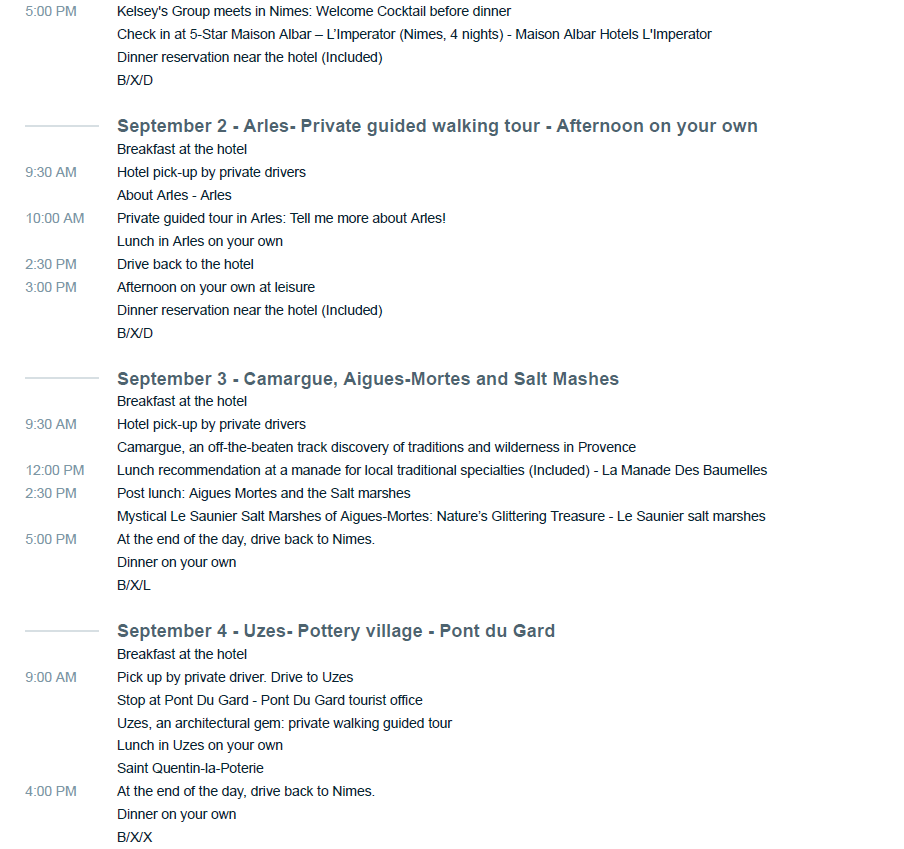 If we want to add more nights, can Foreign to Domestic help? We would love for you to enjoy more time in France and we would be happy to assist in organize any pre or post nights that you'd like to add to your trip plans. Let's discuss your options! Kelsey will be flying in and staying in Aix-en-Provence for a night and then transferring to Nimes the next day.