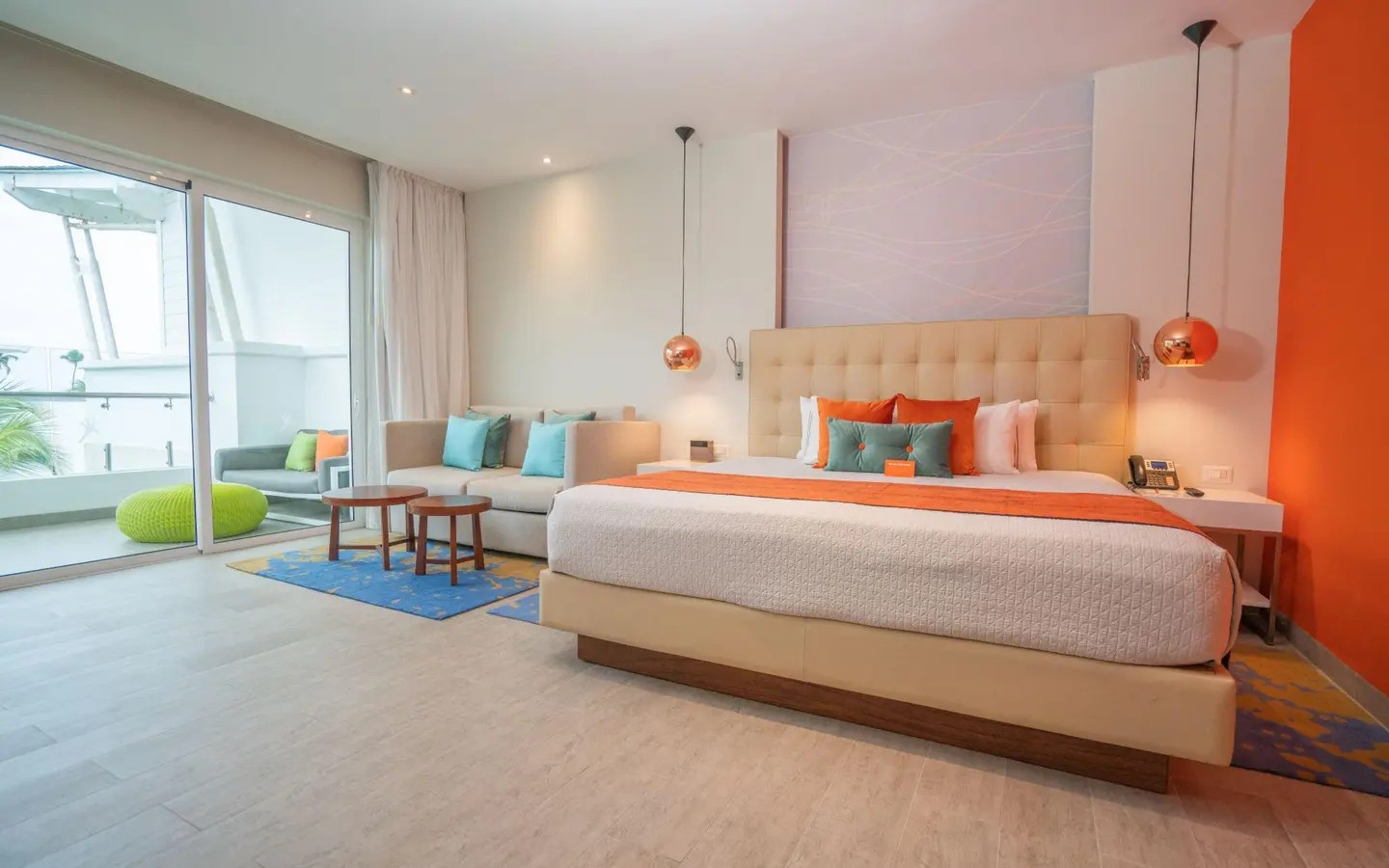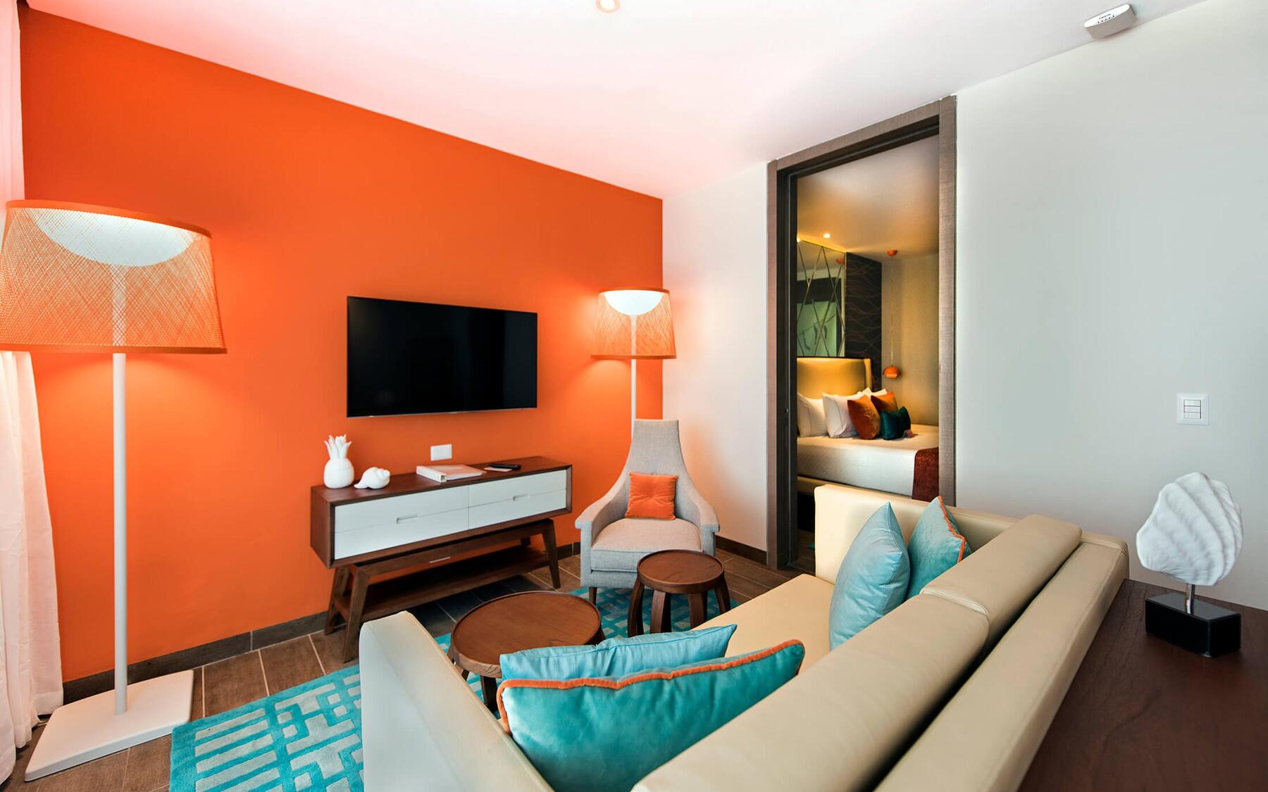 This suite features a king-sized bed or two double beds, a sofa, smart TV, marble bathroom with double sinks and a rain shower as well as spacious balcony with a sitting area. All accommodations have air conditioning, a 42" smart TV, radio/alarm clock docking station with Bluetooth, safety deposit box, amenity kit, once-daily stocked minibar, iron and ironing board, coffee maker, direct dialing telephone, deluxe bathrobes, bathroom with hairdryer and vanity mirror.