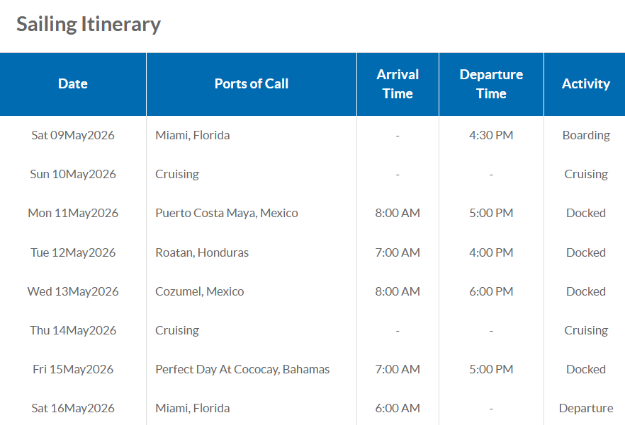 Cruise Dates: May 09 - 16, 2026