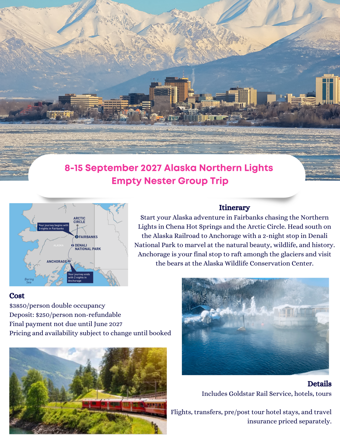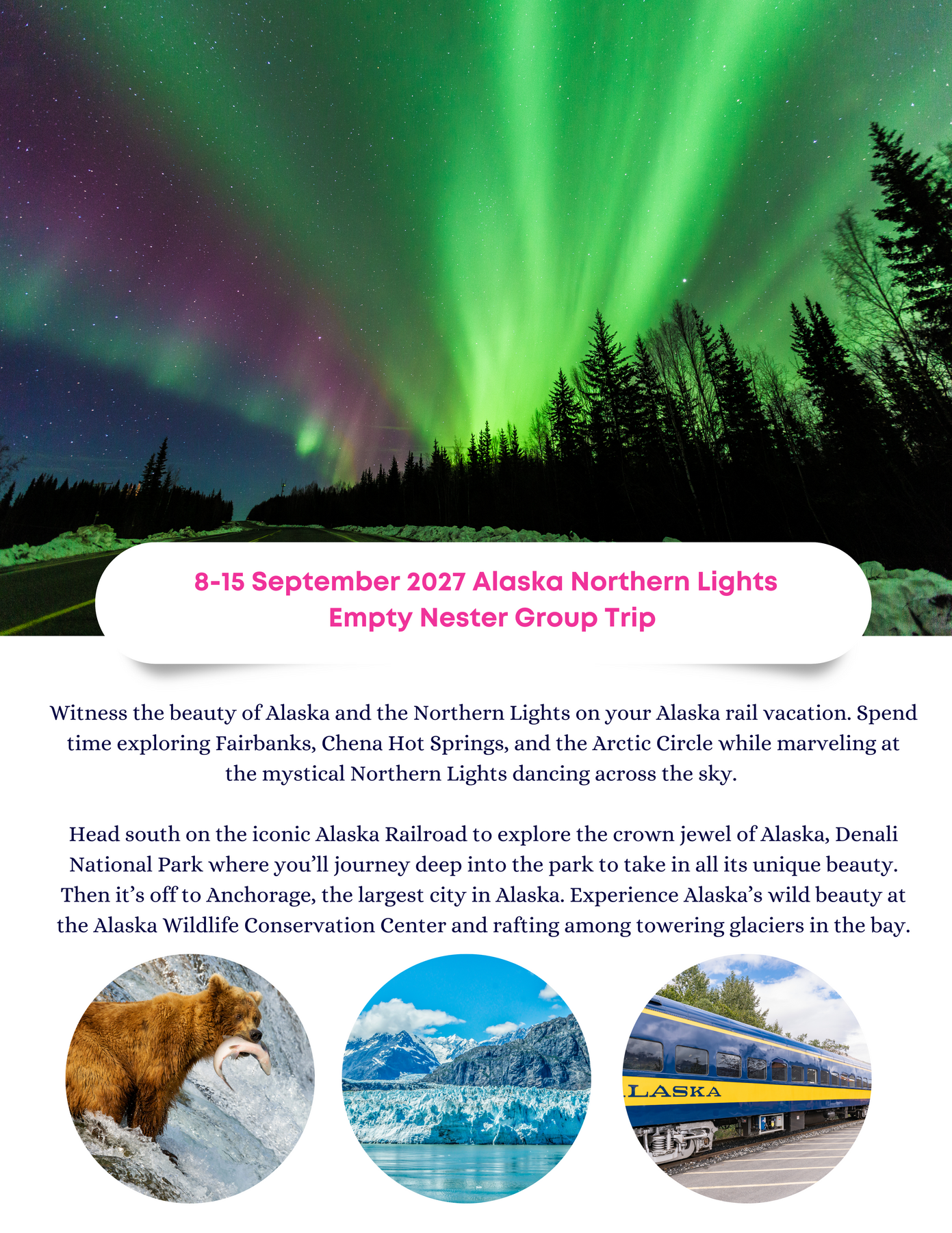 2026 September 8-15 Alaska Arctic Circle & Northern Lights Rail Group Trip