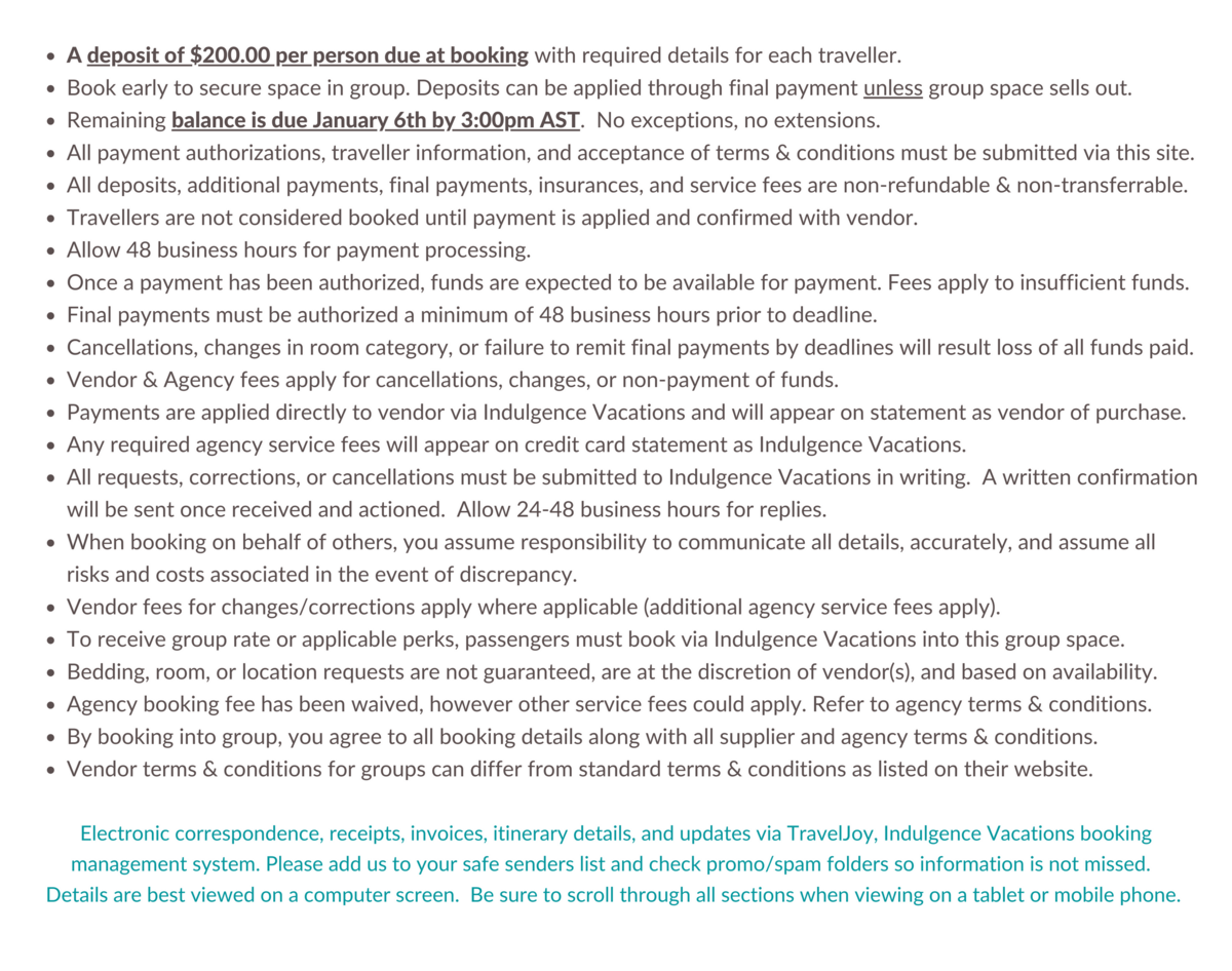 Group Flex must be added at time of booking and must be added for all passengers within the same room (one person cannot purchase with more than one person in the room).